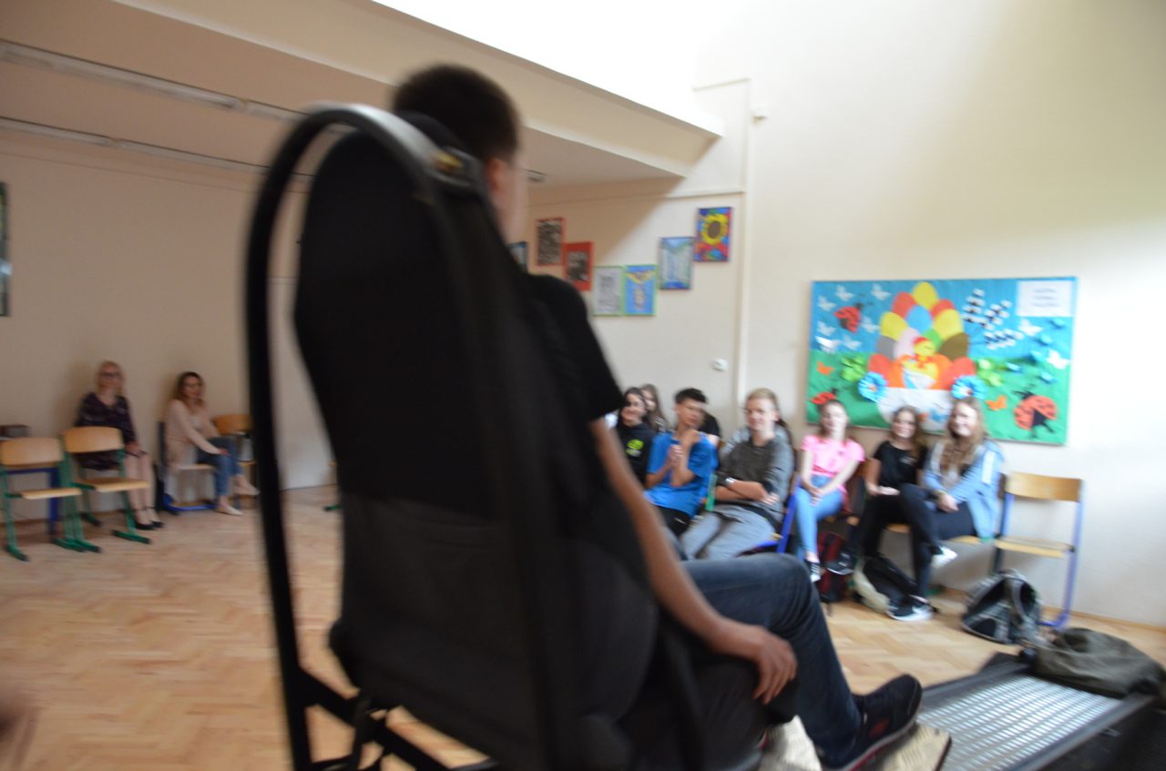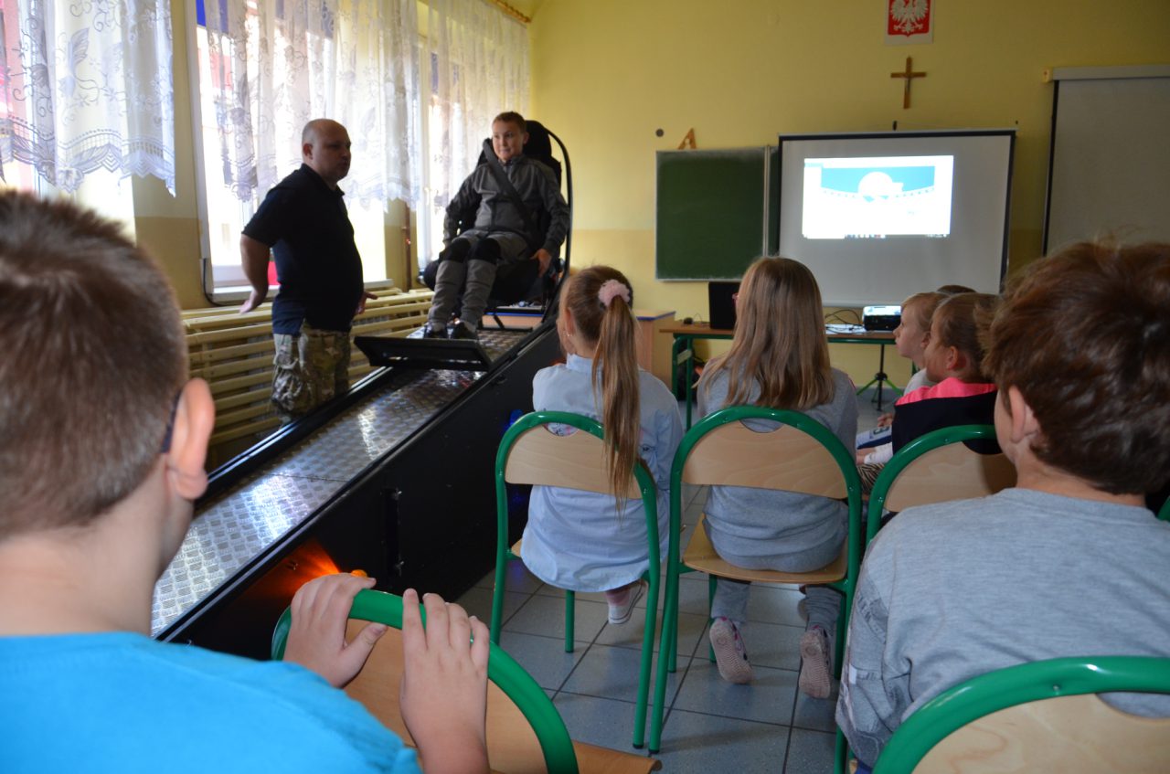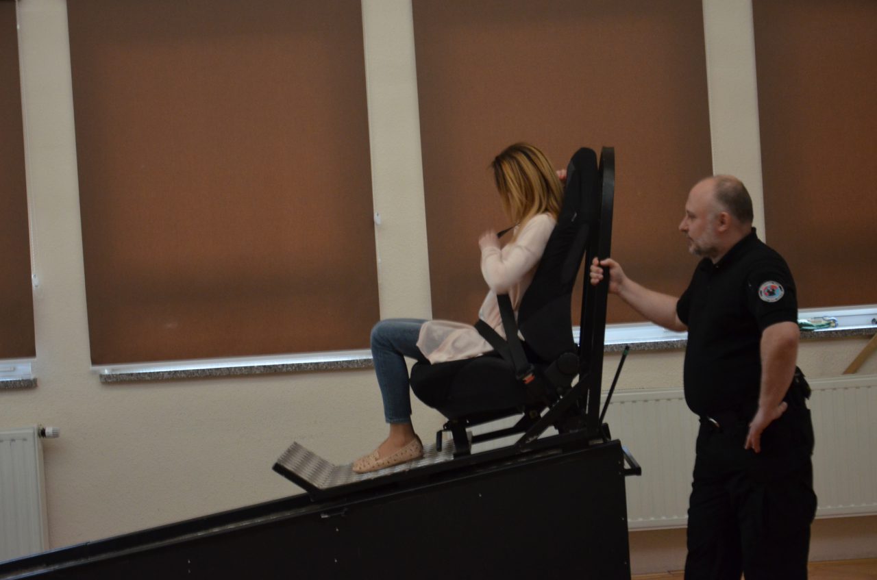 Podczas realizacji zajęć edukacyjnych wykorzystamy został Symulator Zderzenia - miał on uświadomić uczestnikom zajęć w sposób praktyczny jak ważne jest zapinanie pasów bezpieczeństwa podczas jazdy pojazdem. Symulator, który był wykorzystany do prowadzenia zajęć imituje sytuację zderzenia pojazdu jadącego z prędkością około 10 km/h z nieruchomą przeszkodą. Urządzenie składa się z trzech części. Dwie z nich stanowią równię pochyłą po której zjeżdża platforma z fotelem wyposażonym w pasy bezpieczeństwa. Część jezdna porusza się po równi z osobą przypiętą do fotela, po czym gwałtownie zatrzymuje się. Sytuacja taka sprawia, że pasażer siedzący w fotelu czuje szarpnięcie, lecz zapięte pasy bezpieczeństwa skutecznie go zabezpieczają. Każdy uczeń, który wyraził na to zgodę przeżył „zderzenie" na żywo w bardzo bezpiecznych warunkach, poznał reakcję ciała w czasie nagłego zatrzymania z niewielkiej prędkości – dzięki temu wzrosła świadomość uczestników zajęć w sprawie konieczności używania pasów bezpieczeństwa jako zabezpieczenia przed niepożądanymi skutkami zderzenia pojazdu mechanicznego (np. samochodu). Wzrosła również świadomość niebezpieczeństwa wynikającego z nagłego zatrzymania pojazdu i wiedza, że jakiekolwiek zderzenie nie pozostaje obojętne dla pasażerów oraz, że zwiększenie prędkości pojazdu, powoduje większe skutki w czasie jego nagłego zatrzymania.