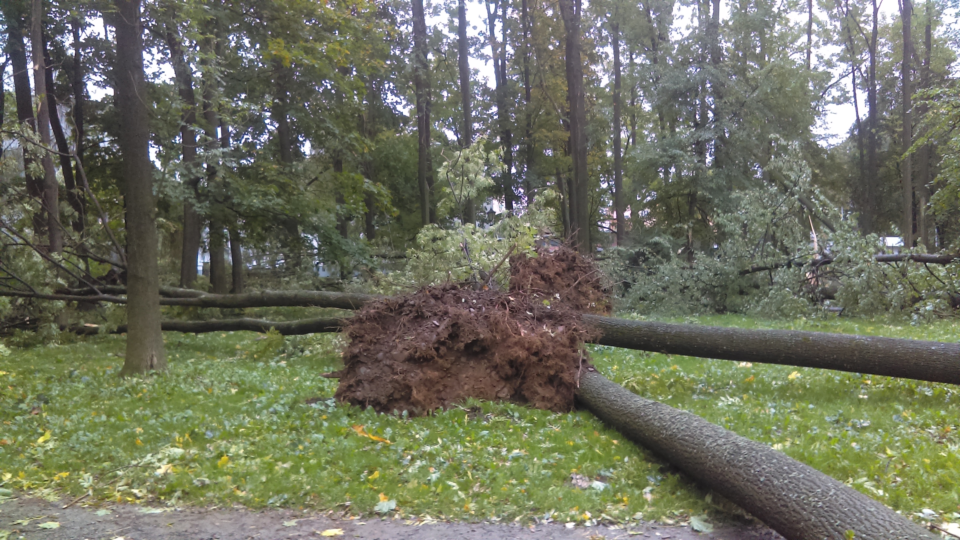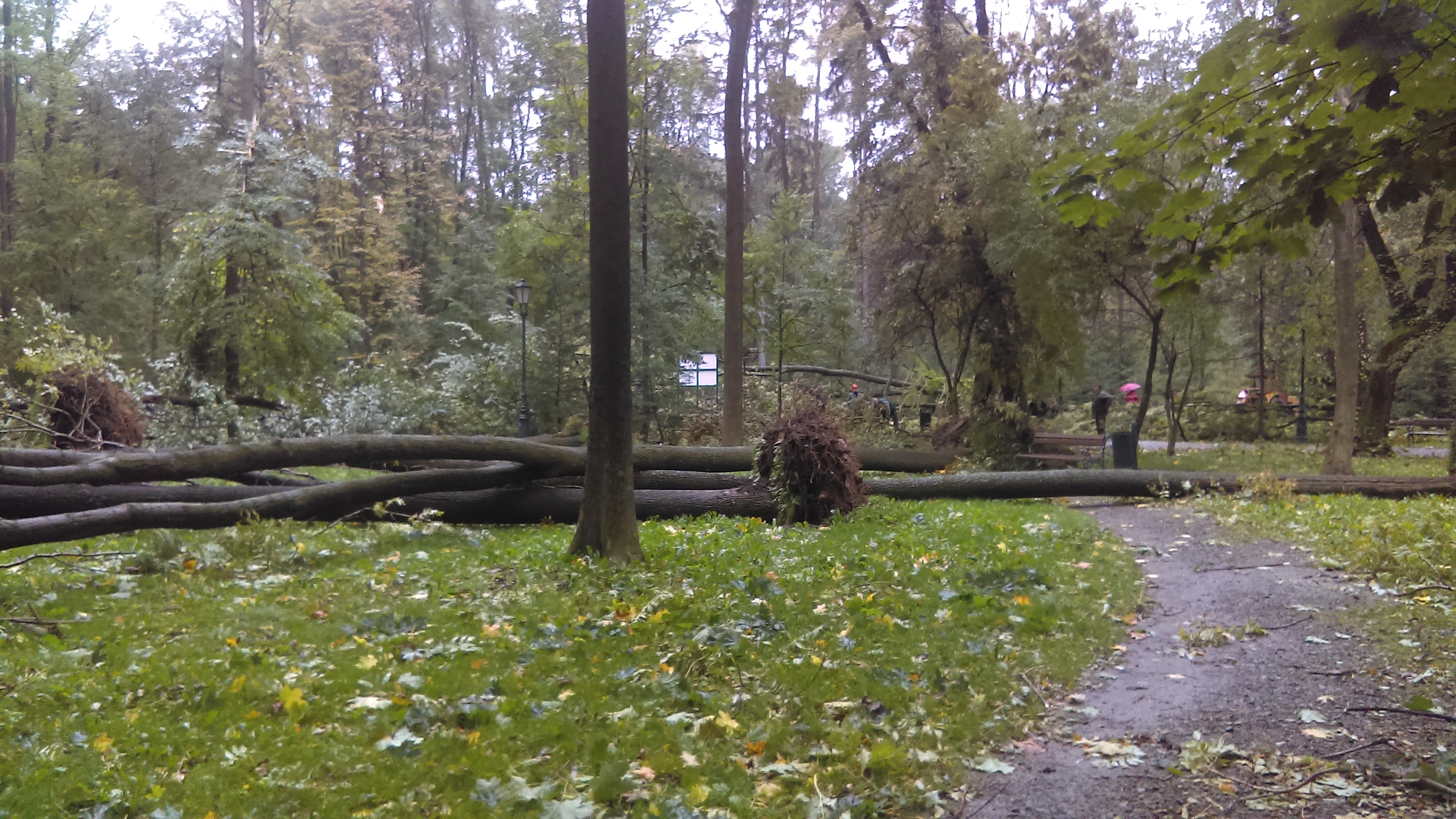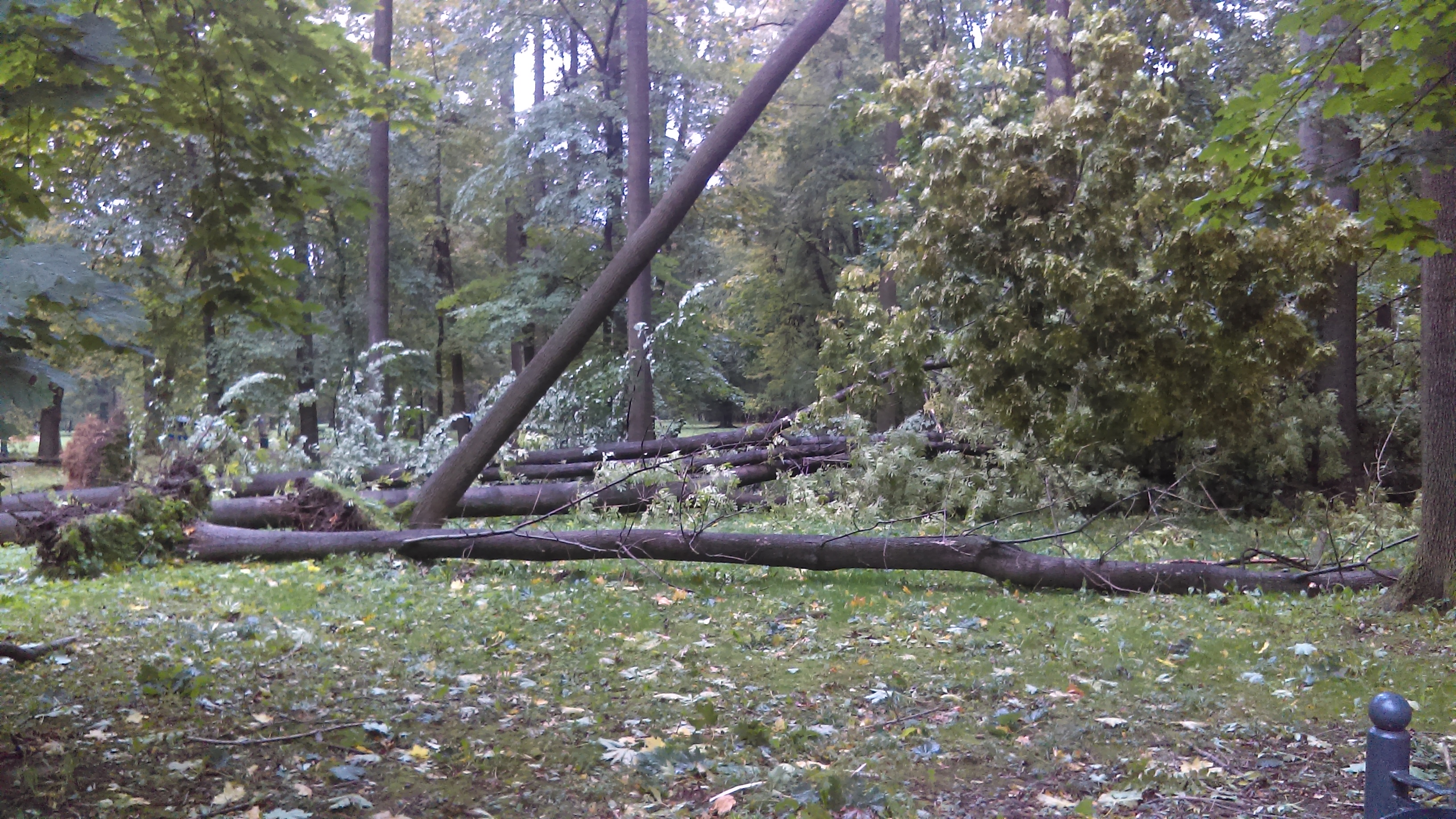 * Urząd Miejski szacuje, że zniszczeiu uległa 1/5 parkowego drzewostanu. Park znalazł się w centrum nawałnicy, na szczeście nikt tam akurat nie przebwał.