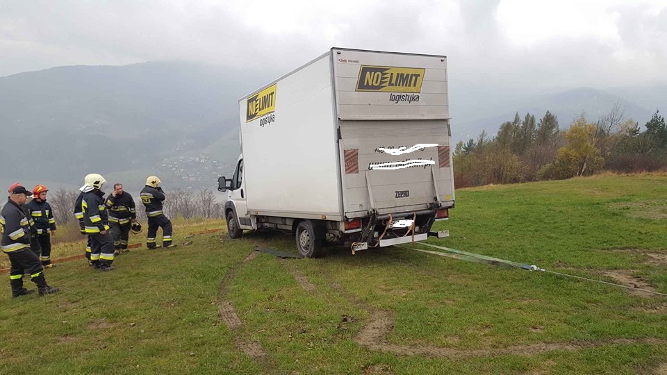 Około godz.14:20 strażacy zostali zadysponowani na szczyt tej góry, gdzie auto dostawcze stoczyło sie w kierunku zbocza. Po zabezpieczeniu pojazdu przed dalszym staczaniem, przy pomocy wciągarki wyciągnęli samochód. Na miejsce przybyły również dwie jednostki z JRG Żywiec. Akcja trwała 50 minut.