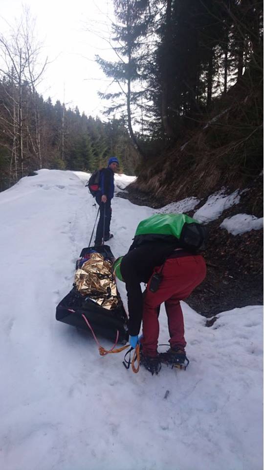 Ratownicy Grupy Beskidzkiej GOPR otrzymali zgłoszenie, że na żółtym szlaku poniżej przełęczy Bory Orawskie (słow. Mútňanske Sedlo) znajduje się turystka, która w wyniku poślizgnięcia prawdopodobnie złamała nogę i nie może kontynuować zejścia. Z CSR wyruszył zespół 4 ratowników. Autem terenowym dojechano do dna doliny, ze względu na trudne warunki resztę dystansu ratownicy musieli pokonać pieszo. Na miejscu wypadku stwierdzono u turystki złamanie podudzia. Po zabezpieczeniu urazu oraz zapewnieniu komfortu termicznego, ratownicy ewakuowali poszkodowaną w noszach SKED, za pomocą technik linowych kilkaset metrów w dół, po czym karetką GOPR przetransportowano ją do Złatnej, gdzie została przekazana Zespołowi Ratownictwa Medycznego.