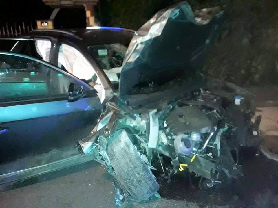 VW tarok wypadł na łuku z drogi i uderzył w ogrodzenie. W wypadku zostały poszkodowane dwie osoby. Udzielono im pierwszej pomocy i przekazano z urazami głowy oraz podejrzeniem urazu kręgosłupa Zespołowi Ratownictwa Medycznego.