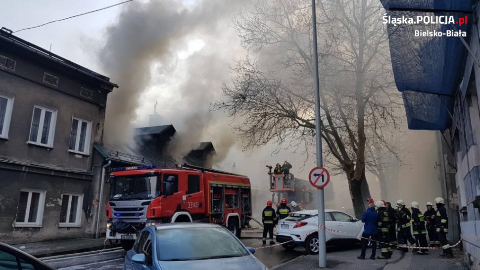 - Działania straży pożarnej polegały na zabezpieczeniu miejsce zdarzenia, następnie przystąpiono do podawania środków gaśniczych na palący się budynek i budynki gospodarcze zlokalizowane za budynkiem mieszkalnym. Ze wstępnego rozpoznania ustalono, że wszyscy mieszkańcy opuścili budynek przed przybyciem zastępów PSP. W trakcie działań ewakuowano 4 osoby z sąsiedniego budynku z uwagi na ryzyko rozprzestrzenienia się pożaru. Po opanowaniu pożaru, przystąpiono do ponownego sprawdzenia budynku, dzięki czemu potwierdzono, że w obiekcie nie znajdują się żadne osoby poszkodowane. Po godzinie 19 przystąpiono do naprzemiennych prac rozbiórkowych i dogaszania pożarów ukrytych w zamkniętych przestrzeniach podłóg podniesionych oraz obniżonych sufitów na poddaszu - przekazała Patrycja Pokrzywa, rzecznik KM PSP w Bielsku-Białej.