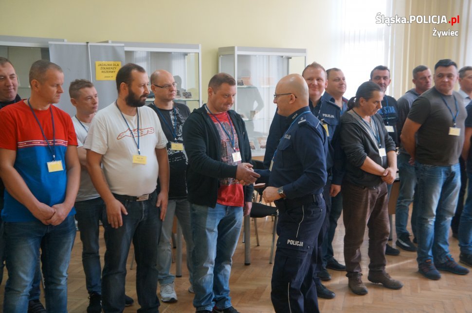 Rezerwistów przywitał Komendant Powiatowy Policji w Żywcu mł. insp. Michał Łukasik. Następnie zostali oni zapoznani z miejscem, gdzie w razie mobilizacji mieliby wykonywać zadania, ze specyfiką służby, podstawowymi zadaniami Policji, a także ze sprzętem i uzbrojeniem wykorzystywanym przez tę formację. Wzięli oni także udział w wykładach poświęconych zasadom udzielania pierwszej pomocy, zasadom ochrony informacji niejawnych, czy zasadami, przypadkami i sposobem posługiwania się bronią palną. Na zakończenie ćwiczenia wszyscy uczestnicy otrzymali stosowne zaświadczenia o jego odbyciu.