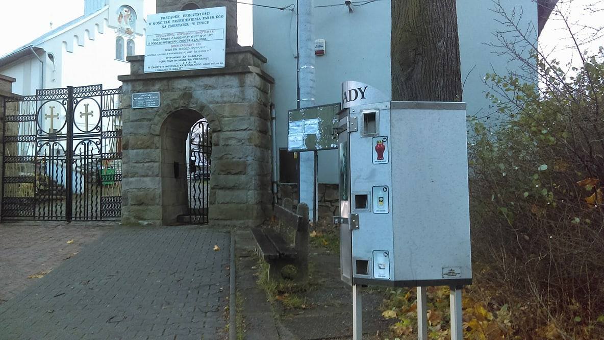 W Żywcu przy cmentarzu Przemienia Pańskiego jeden automat stoi obok wejścia głównego, drugi nieco wyżej, przy parkingu po drugiej stronie ulicy. Czekamy na stanowisko Ratusza w sprawie...