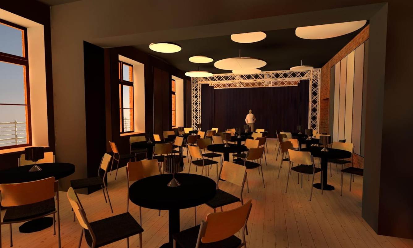 Poniższe zdjęcia są wizualizacją budynku, sali widowiskowej oraz kawiarenki która mieścić się będzie wewnątrz GOK-u. Pierwsze prace remontowe planuje się rozpocząć już w przyszłym roku.