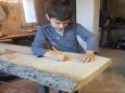 Zamiast klocków i autek wybiera dłuto i półmetrowy kawał drewna, a jego placem zabaw jest pracownia rzeźbiarska ojca.