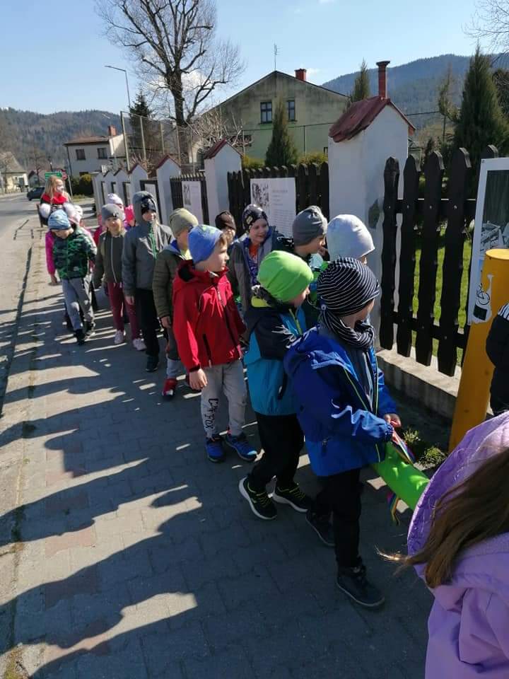 "Przeszliśmy "Szlakiem twórców" oglądając fotografie znajdujące się na ogrodzeniu naszej placówki, największych nieżyjących już twórców ludowych, artystów naszej gminy. Nie mogło zabraknąć akcentu muzycznego - "hajdukowaliśmy, aż pod powały..." tańcząc hajduka, czyli tańca charakterystycznego dla Beskidu Żywieckiego." - tak wspomniana została ta retrospekcja przez dzieci.