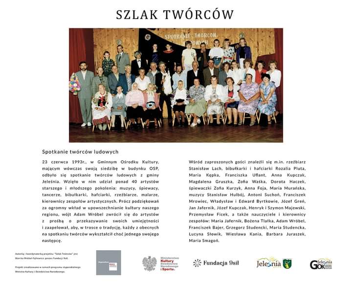 Wystawa przedstawia sylwetki twórców ludowych, żyjących kiedyś na terenie gminy Jeleśnia. Plansze prezentują m. in.: dudziarzy, twórców zabawek ludowych, poetki, malarzy, muzyków grający na skrzypcach, czy też bibułkarki. Każda plansza zawiera kod QR. To dwuwymiarowy kod pozwalający za pomocą skanu kamerą smartfonu, przejść do strony internetowej Fundacji 9sił, która jest współtwórcą wystawy. Na stronie fundacji można znaleźć szersze informacje na temat tych twórców i ich dzieł.