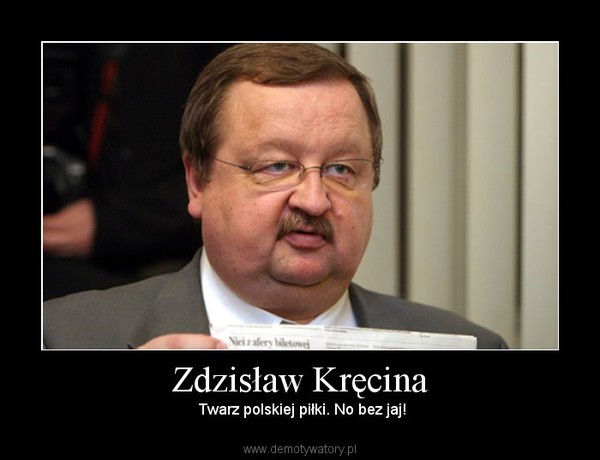 Wszyscy na pewno kojarzą tę osobę, którą tyleż samo często określano szarą eminencją polskiej piłki, co i jej barwną postacią. Zdzisław Kręcina szybko i na długo stał się częstym i głównym obiektem internetowych żartów i MEMów. Trzeba przyznać, że były wiceprezes na taką percepcję zasługiwał. Zarówno powierzchowność jak i jego postawa kojarzyły się wielu ze słusznie minioną epoką. W memach żartowano, jak to pan Zdzisław załatwia coś komuś po kryjomu, jak to wszystko gra dzięki niemu. Pojawiały się w nich hasła: ”tera ja za Blattera”, „Od Chicago po Wodzisław, na prezesa tylko Zdzisław”, czy też: „Z takim nazwiskiem nie powinni mu pozwolić zbliżać się do pieniędzy”.