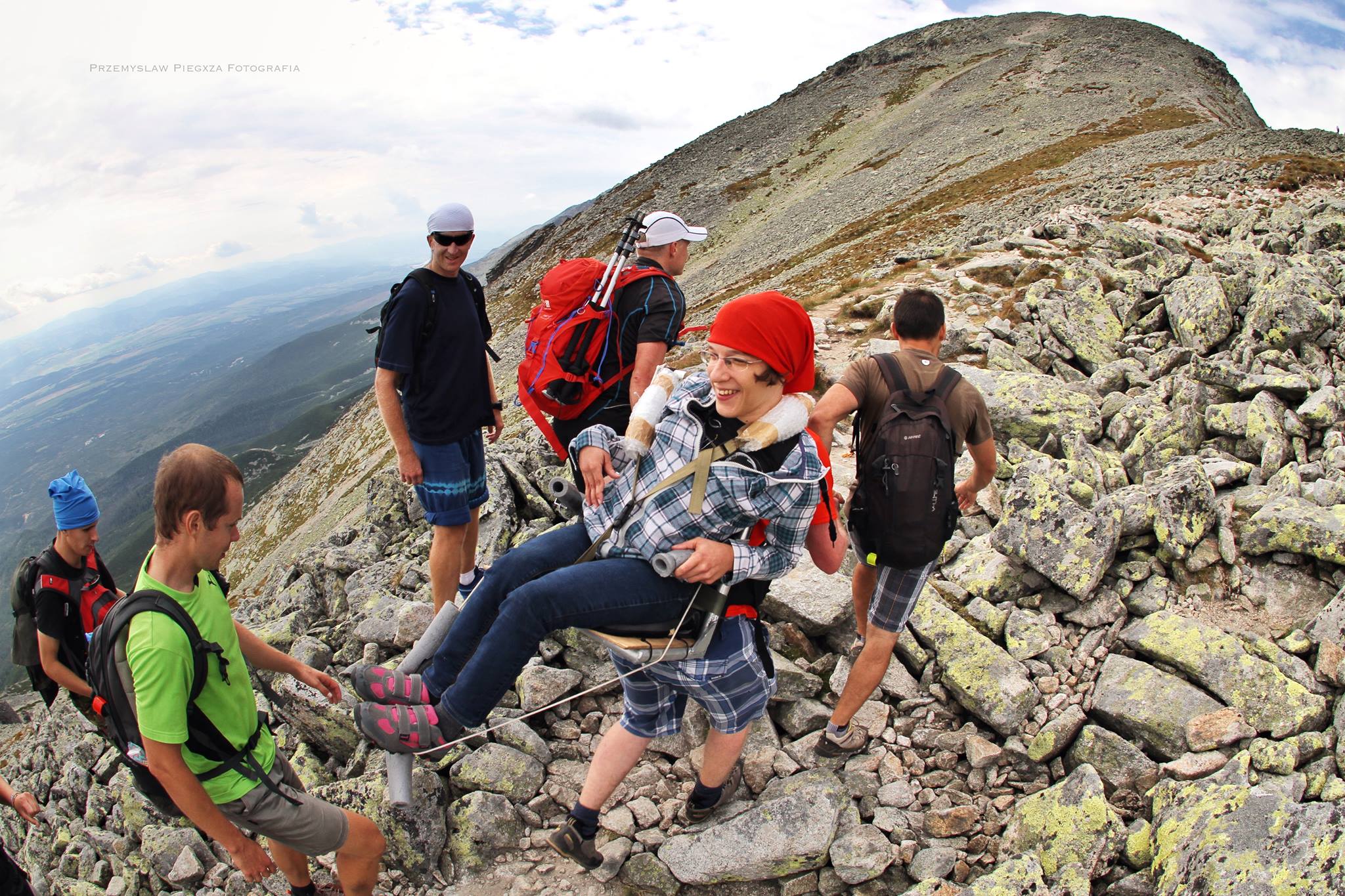 EB: Cel tak ogólnie to nic innego, tylko niesamowita przygoda i niezapomniane, cudne widoki z wspaniałymi ludźmi, którzy są moimi przyjaciółmi. Dla grupy to był trzeci wypad górski i pierwszy raz wszyscy doszliśmy na sam Sławkowski Szczyt. Dla naszego koordynatora grupy ogromne brawa, każdy z nas miał po 12 osób do fizycznej pomocy. Bo tak w ogóle to było nas trzech wózkowiczów - ja, Ania i Andrzej, ale ja pierwszy raz.