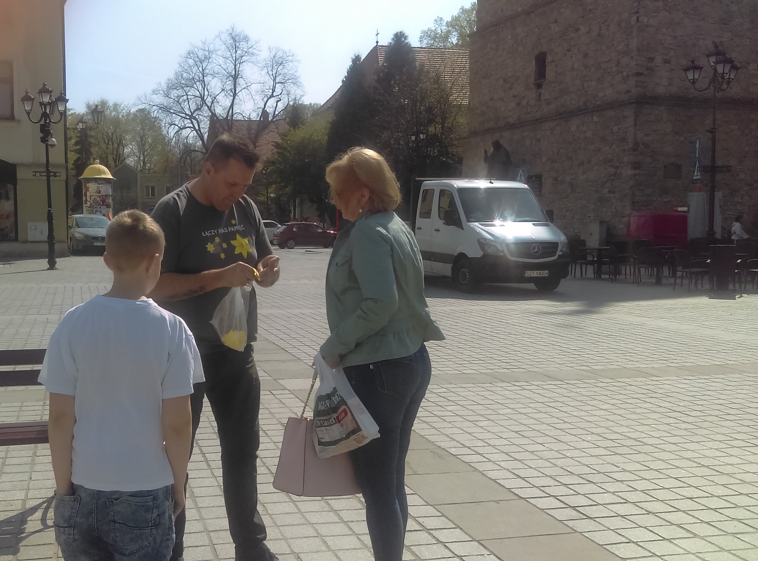 Szybko rozdano większość 160 naturalnych żonkili z Zespołu Szkół Ogrodniczych w Bielsku-Białej oraz 200 papierowych kwiatków. Po półtorej godzinie akcji zostało kilkanaście sztucznych i wręczono ostatniego ciętego żonkila. Wszystko to przy pozytywnym stosunku przechodniów. Czy wiedzieli, z czym takie działanie jest związane, zapytaliśmy o to Dariusza Paczkowskiego, prezesa zarządu Fundacji Klamra.