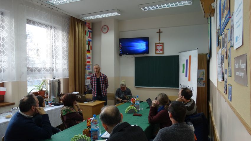 W spotkaniu wzięli udział koordynatorzy i nauczyciele z partnerskich szkół z Włoch, Hiszpanii, Norwegii i Turcji. W trakcie tego wydarzenia odbyły się szkolenia, warsztaty i prezentacje dotyczące odnawialnych źródeł energii a także problemów związanych z ekologią i ochroną środowiska. Gościem był między innymi ekspert z Fundacji Arka w Bielsku-Białej, Szymon Kułakowski, który przybliżył sytuację związaną z zanieczyszczeniem powietrza w krajach Unii Europejskiej oraz opowiedział o pro-ekologicznych działaniach podejmowanych przez tę fundację. Jego warsztaty zaowocowały nagraniem utworu muzycznego wykonanego przez nauczycieli na instrumentach zrobionych wyłącznie z odpadów i śmieci.