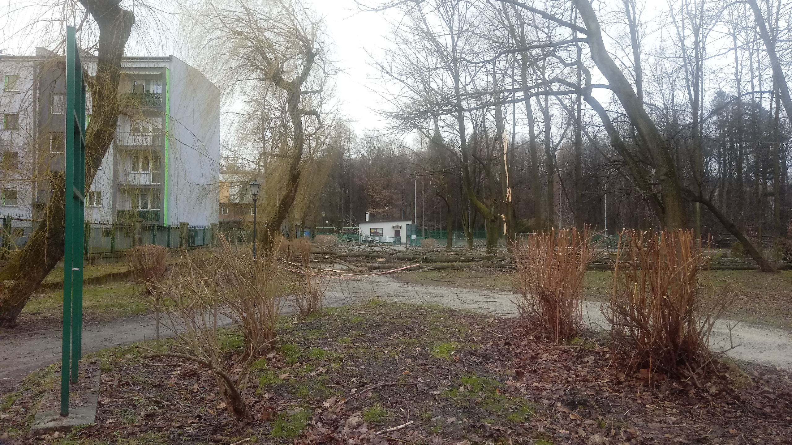 AKTUALIZACJA - Według informacji żywieckiego Ratusza wiatr wywrócił 87 drzew, w tym 1 pomnik przyrody, zniszczony został 1 mostek, ucierpiało również 5 ławek, 5 koszy na śmieci oraz ogrodzenie od strony boiska sportowego.