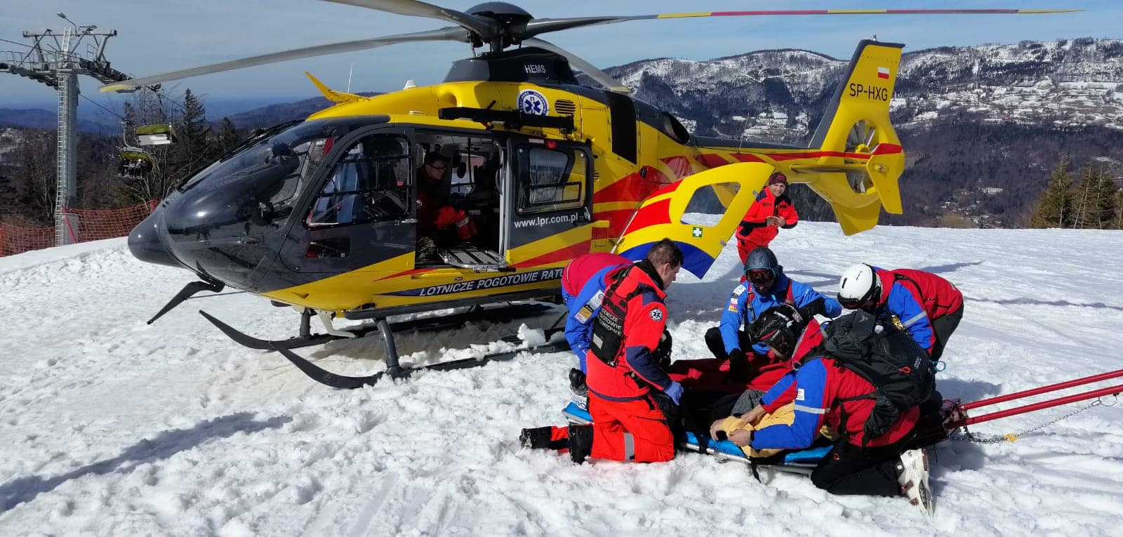 W niedzielę na trasie FIS na Skrzycznem uległ wypadkowi obywatel Czech, doznając poważnego złamania kończyny dolnej.