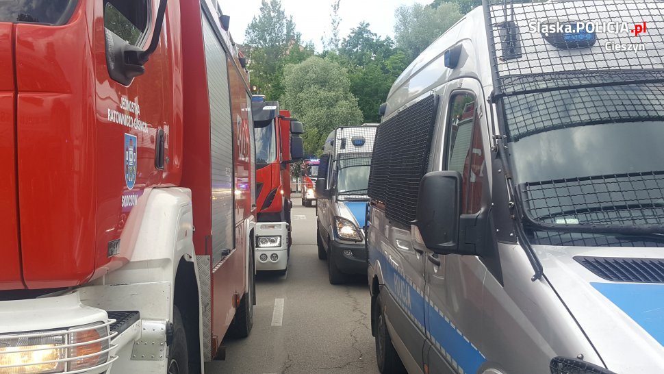 Wczoraj przed południem operator Wojewódzkiego Centrum Powiadamiania Ratunkowego otrzymał informację od zaniepokojonej kobiety o tym, że na parkingu przy hotelu ktoś pozostawił niewielką beczkę wypełnioną płynem. Oznakowania na zbiorniku miały wskazywać na toksyczność substancji. Na miejsce zdarzenia zostali skierowani policjanci, strażacy, ratownicy medyczni, pogotowie energetyczne i gazowe oraz wojewódzki inspektor ochrony środowiska. Dowódcą akcji i jej koordynatorem był Komendant Powiatowy Policji w Cieszynie insp. Jacek Bąk. Teren w pobliżu znaleziska został najpierw sprawdzony, a następnie zabezpieczony przez policjantów i strażaków. Działania polegały na wykluczeniu zagrożenia biologicznego, chemicznego, radiologicznego, a także pirotechnicznego. Mundurowi wykonali również wiele innych, przewidzianych w tego typu wydarzeniach czynności, które miały zapewnić bezpieczeństwo.