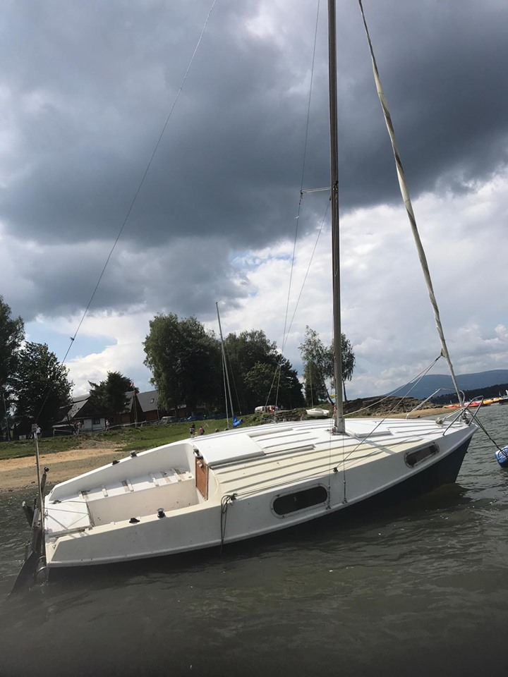 "Żeglarze wiedzą kupa roboty postawienie jej przy obecnym stanie wody, wybieranie wody, naprawianie szkód - popuszczone mocowania szotów plus skradzione bądź wyrzucone dębowe gretingi." - komentuje autorka posta apelując o informacje, jeśli ktoś widział to zdarzenie.